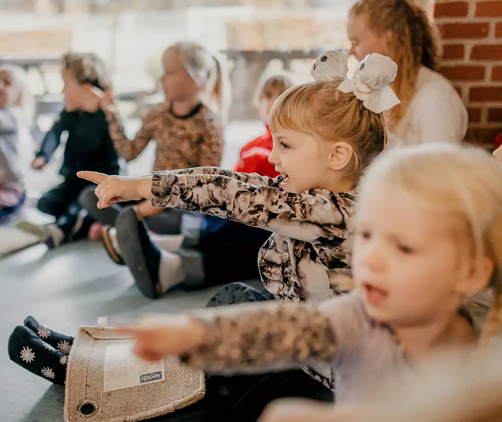 Vi arbejder aktivt med børnenes sociale færdigheder – bl.a. gennem giraf- og ulvesprog, som hjælper børnene med at kommunikere på en respektfuld måde. Derudover deltager vi i Fri for Mobberi, et forebyggende program udviklet af Mary Fonden og Red Barnet. Programmet – og vores bamseven – minder os alle om værdier som tolerance, respekt, omsorg og mod.